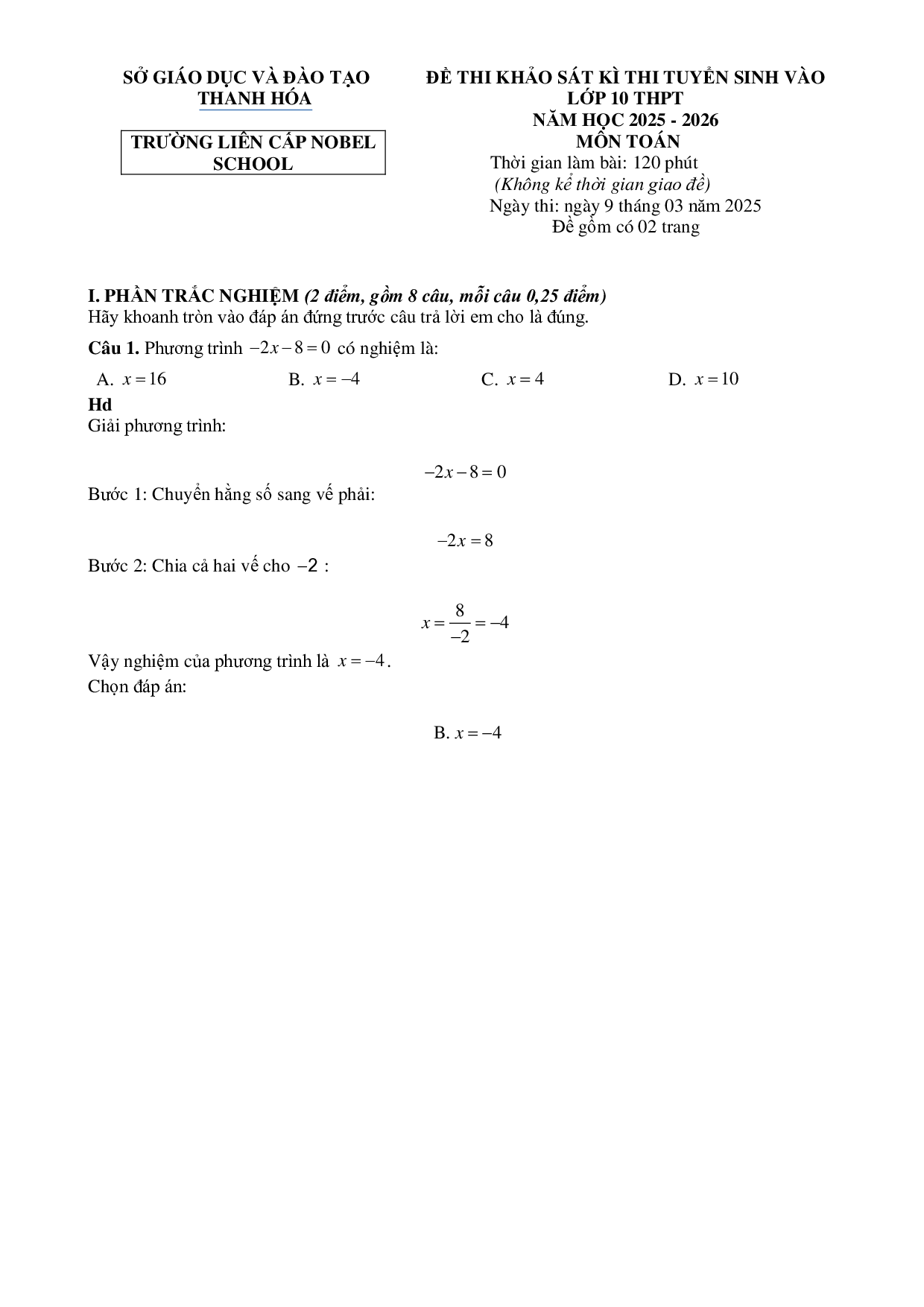 - ĐÁP ÁN THI TOÁN VÀO NGUYỄN TRÃI 09/03/2025